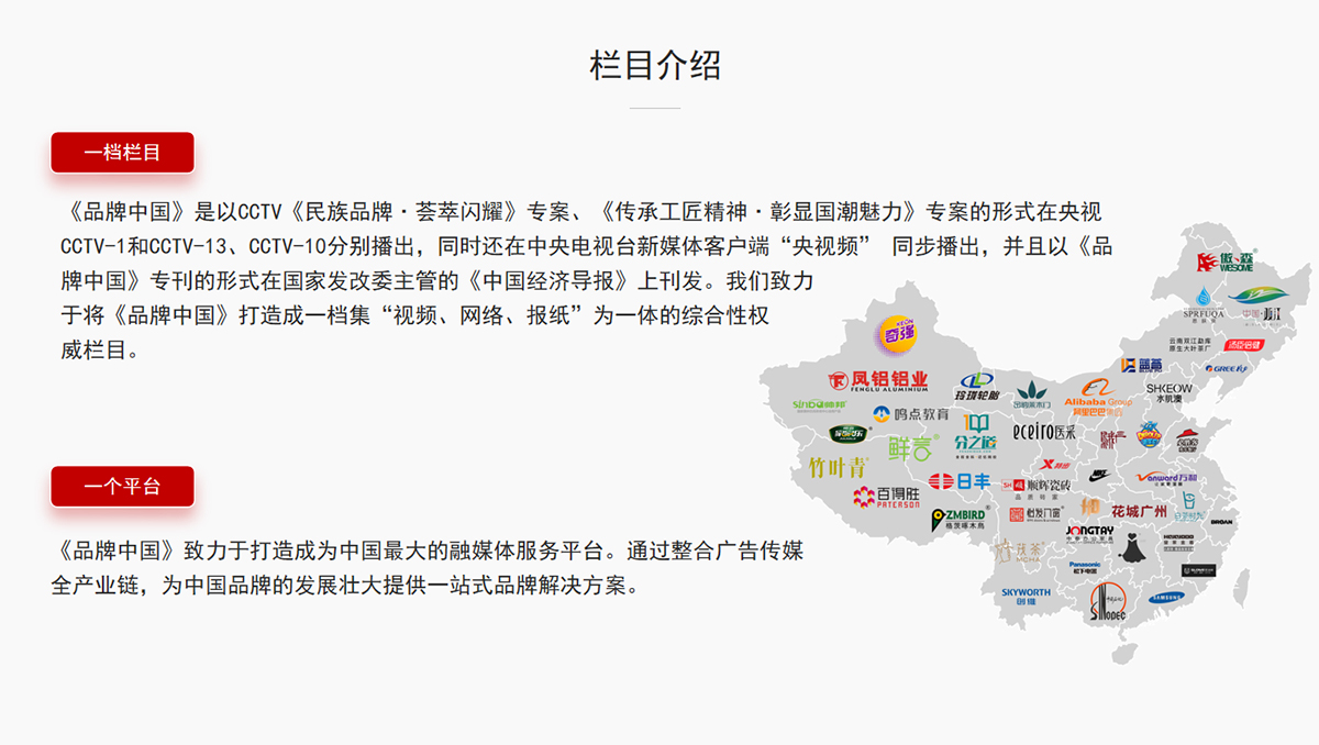 為品牌與《品牌中國》欄目的合作提供強有力的支持,從而幫助品牌實現更高的市場目標。