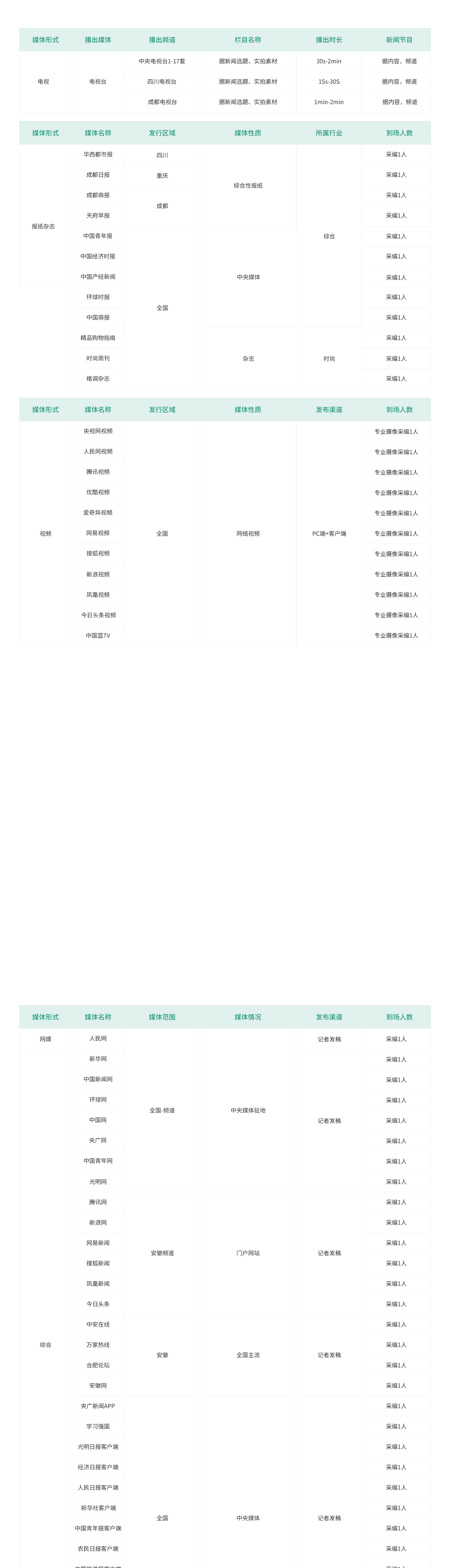 覆蓋全國和地方+全行業+全類型的媒體資源